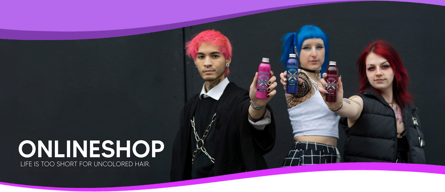 Oh my, you won’t believe what happened today in our Headshot Hair Dye laboratories! Our crazy professor caused an explosion! She was daydreaming and accidentally added 15 ml blood lust instead of 50 gr of magic. This caused unbelievable results: a stunningly deep wine red. We don't want to withhold this new shade of red from you. Please greet little “Peng! Peng!”. Sweet, isn't it? We will see how much you all love this color and then decide, whether we will keep it in stock or if it is a once off limited edition. Okay, and now we will go and help the Professor to clean up…