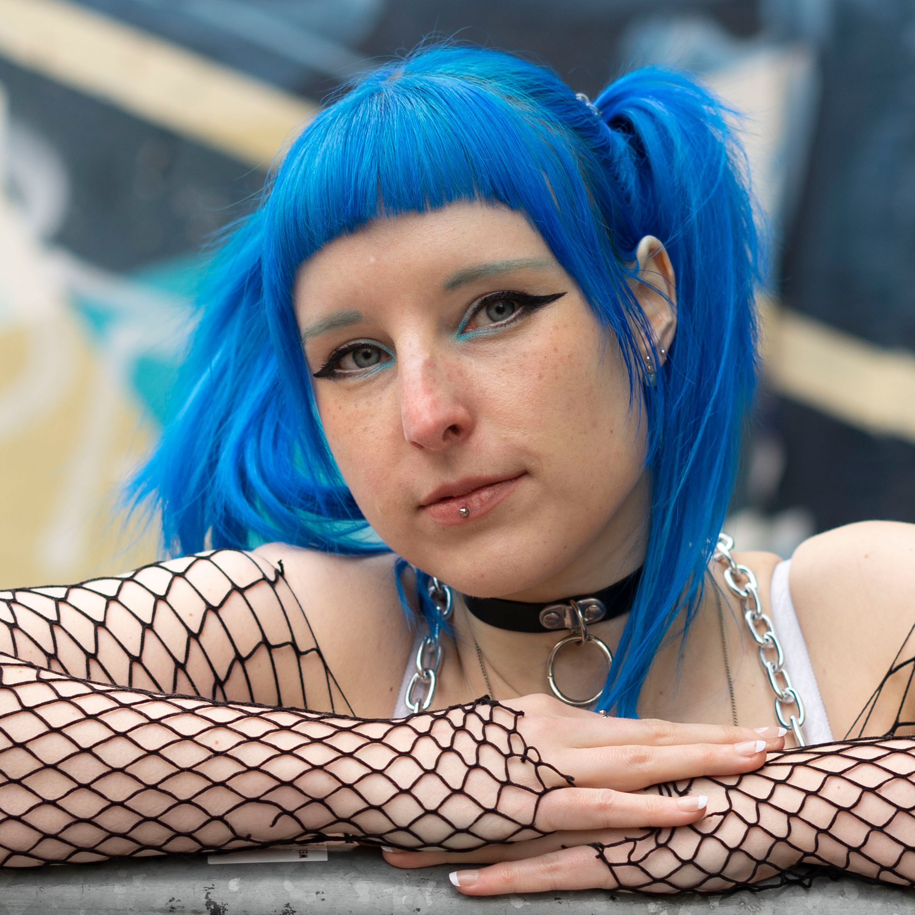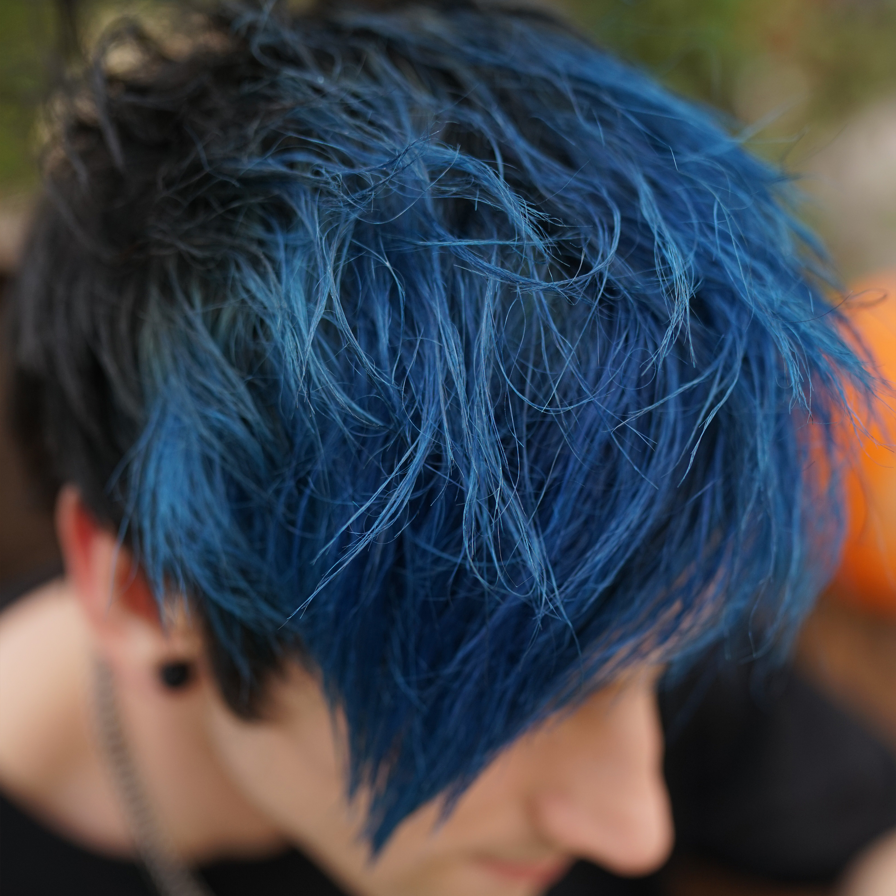 Cooles blau auf meinen Natur weissen Haaren