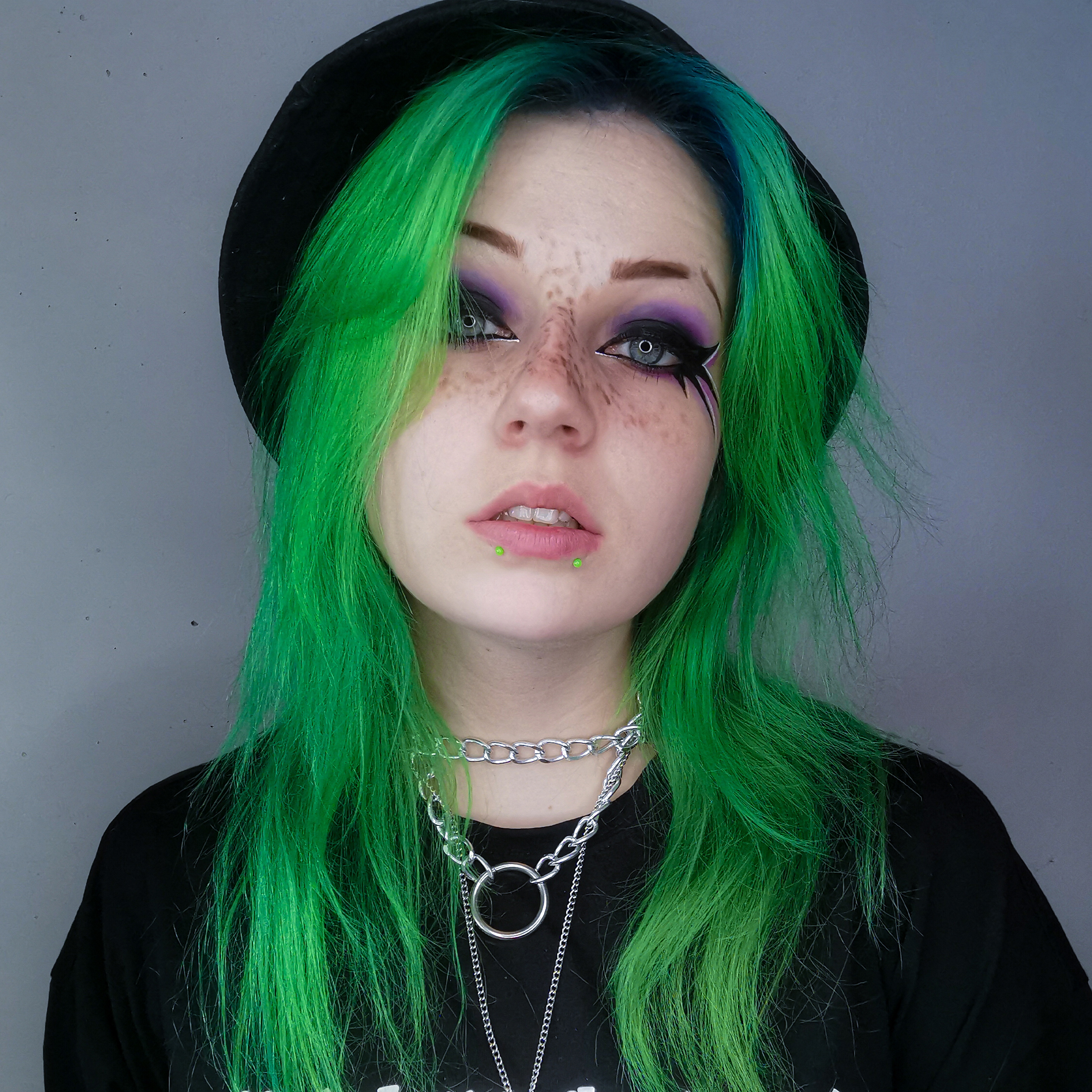 Ohhhhhhhh, schau dich an! You´re sooooooo fucking beautiful! Ach Grilli, und denk dran, dass dies ja eine Haartönung ist und sich das Grr Grr Green mit der Zeit auswäscht. Du musst dann einfach wieder nachfärben, wenn du grün bleiben willst. Es sei denn, du möchtest ein lila Grashüpfer werden, dann brauchst du aber die lila Haarfarbe von Headshot. Darum ist es auch nicht schlimm, falls sich nach dem Haare färben evtl. deine Bettwäsche grünlich verfärbt, weil das wäscht sich ja wieder raus!
