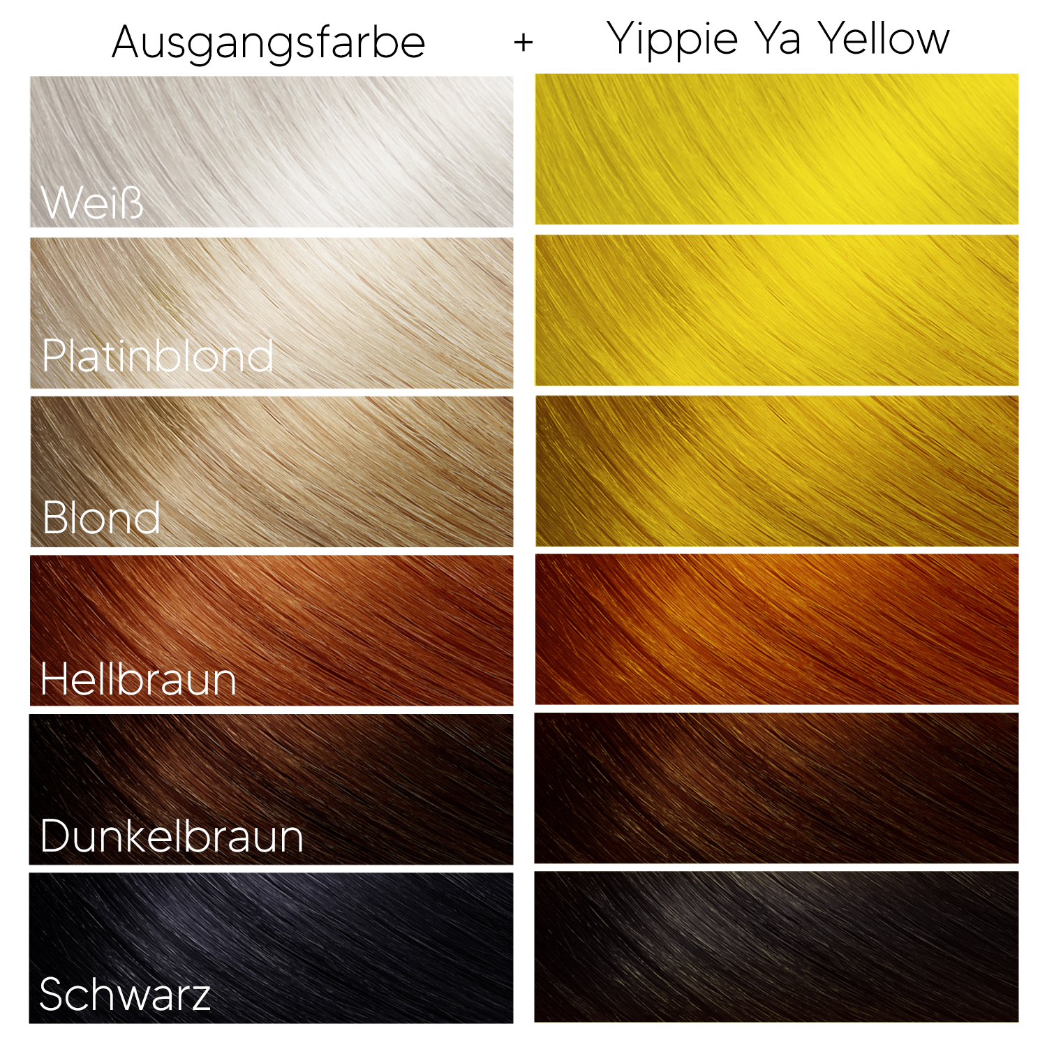 Yippie Ya Yellow is a rich and vibrant shade of yellow. For best results your hair needs to be thoroughly bleached prior dyeing with no red or orange tint.
