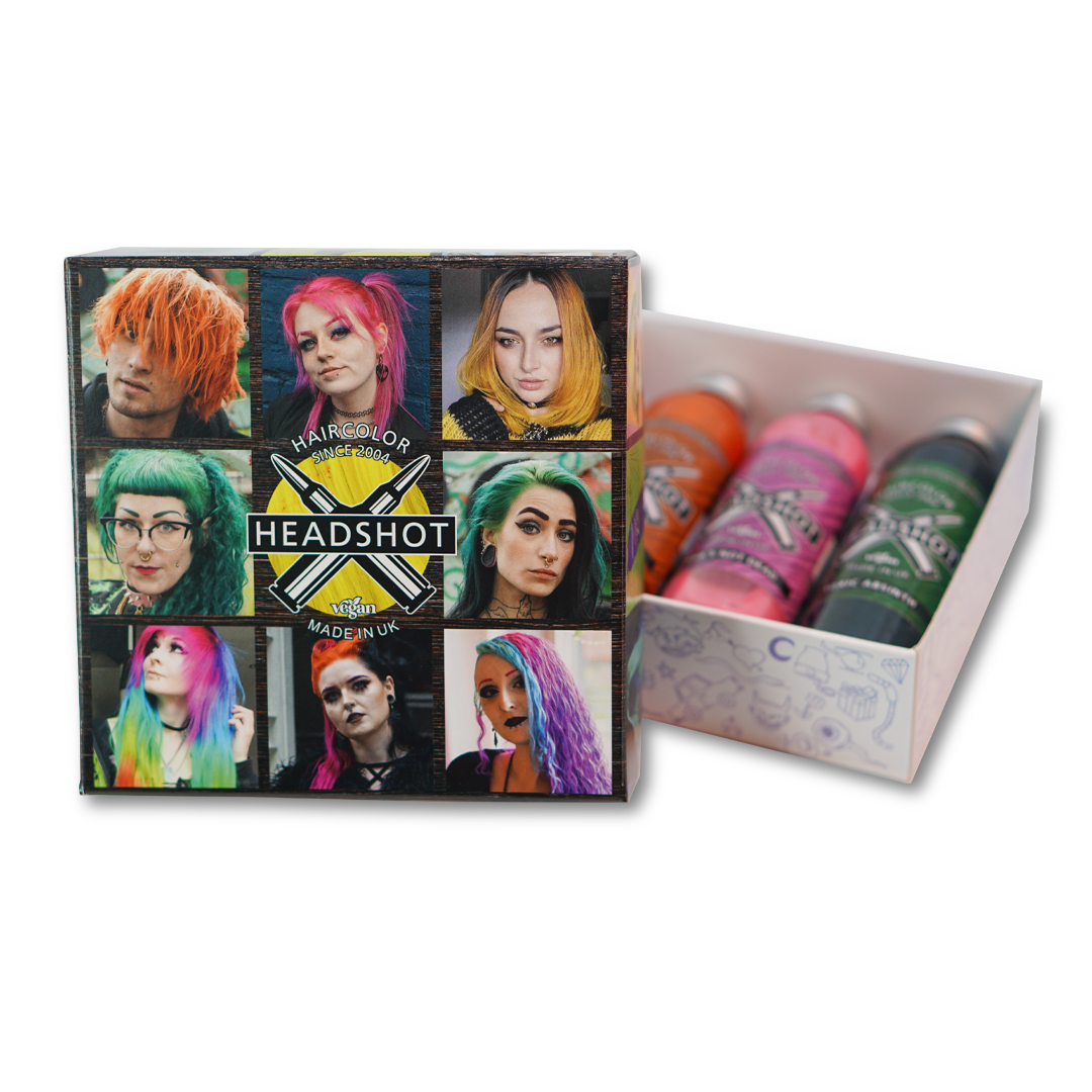 With this set, you get three ultimate headshot hair colors of your choice. Simply pick your three favorite hair colors! Select your three desired colors below; you can choose three different or three identical headshot hair colors. Usage:
