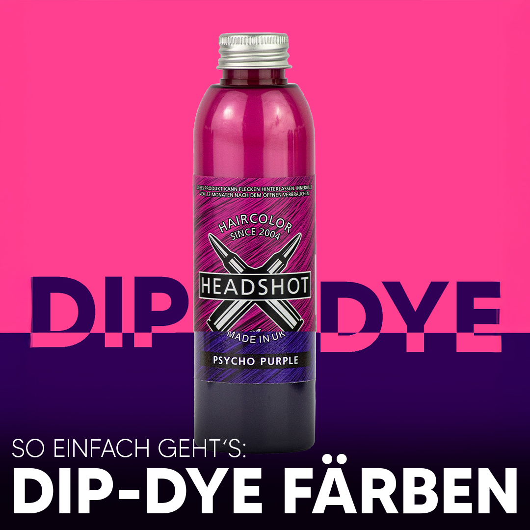 Die Möglichkeiten fĂŒr den Dip-Dye sind total vielfĂ€ltig. Du kannst zum Beispiel einfach bei deiner normalen Haarfarbe bleiben und nur die Haarspitzen anders fĂ€rben. Nehmen wir mal an, du möchtest rote Haarfarbe benutzen, die sehr knallig ist, dann blondierst du zuerst die Haarspitzen und fĂ€rbst danach mit der roten Headshot Haarfarbe.